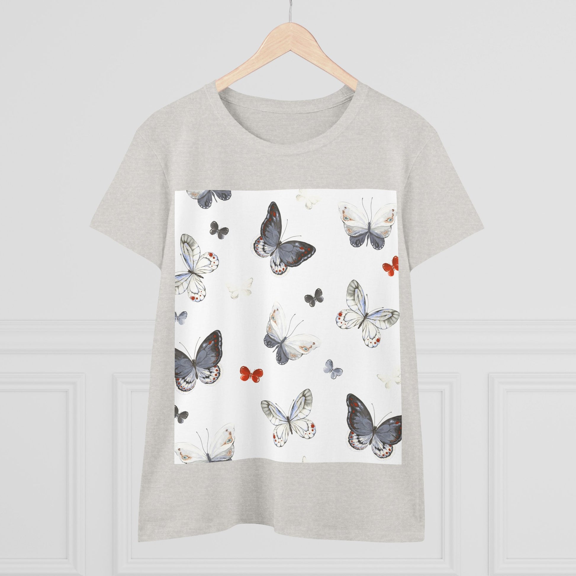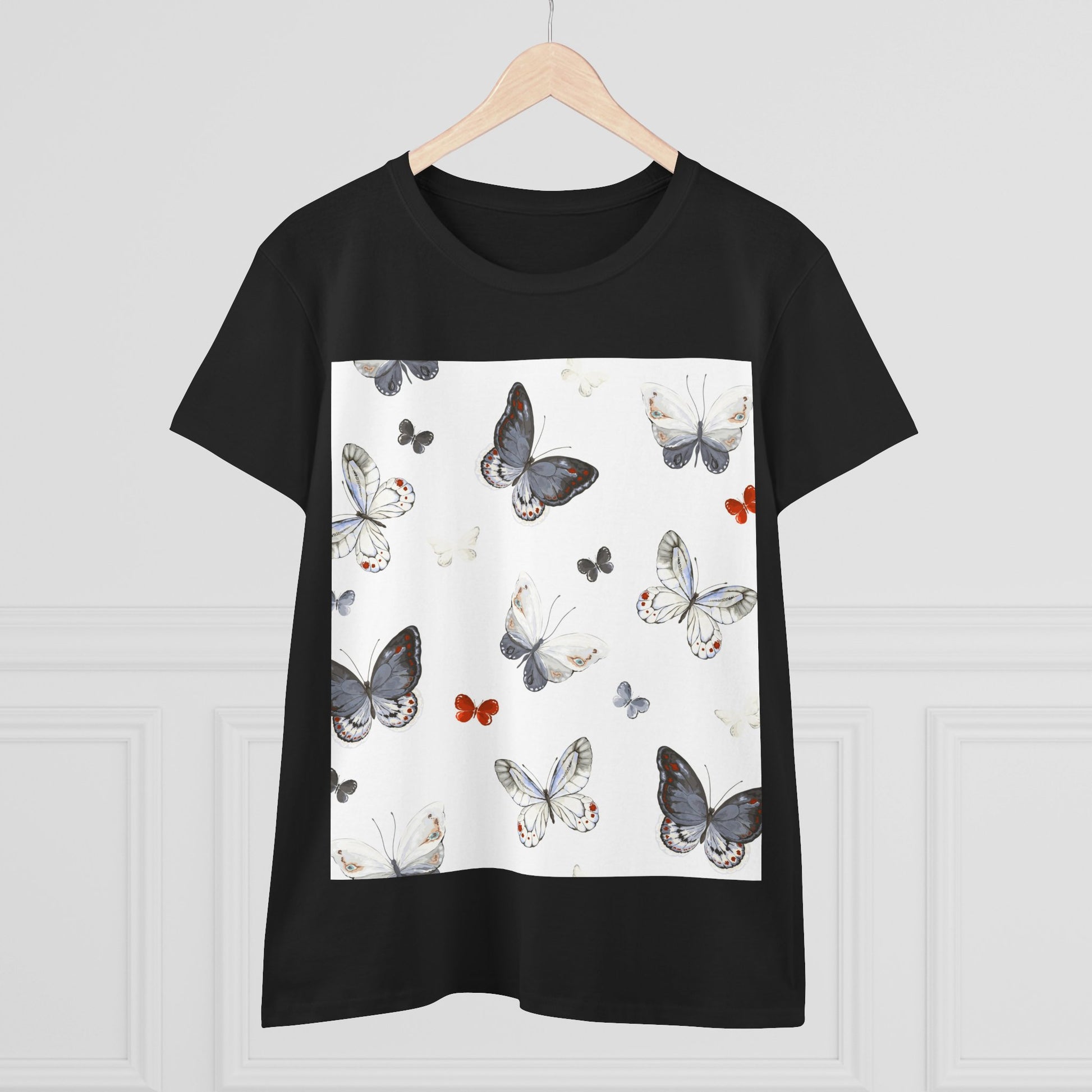 Butterfly Print Women's Cotton Tee, Casual Wear, Nature Lover Gift, Spring Fashion, Lightweight Top, Birthday Gift