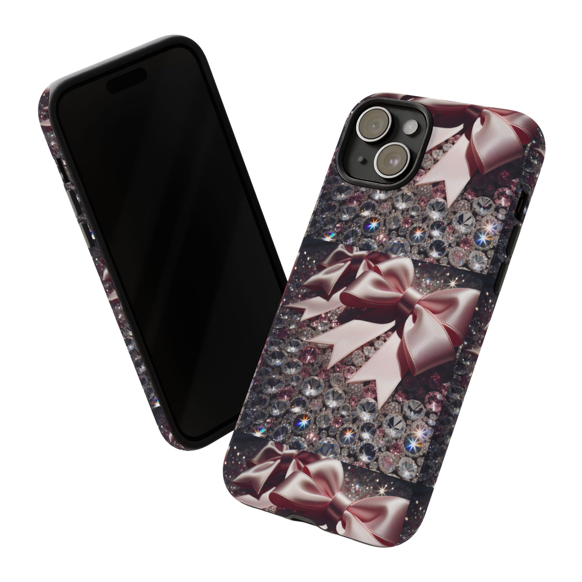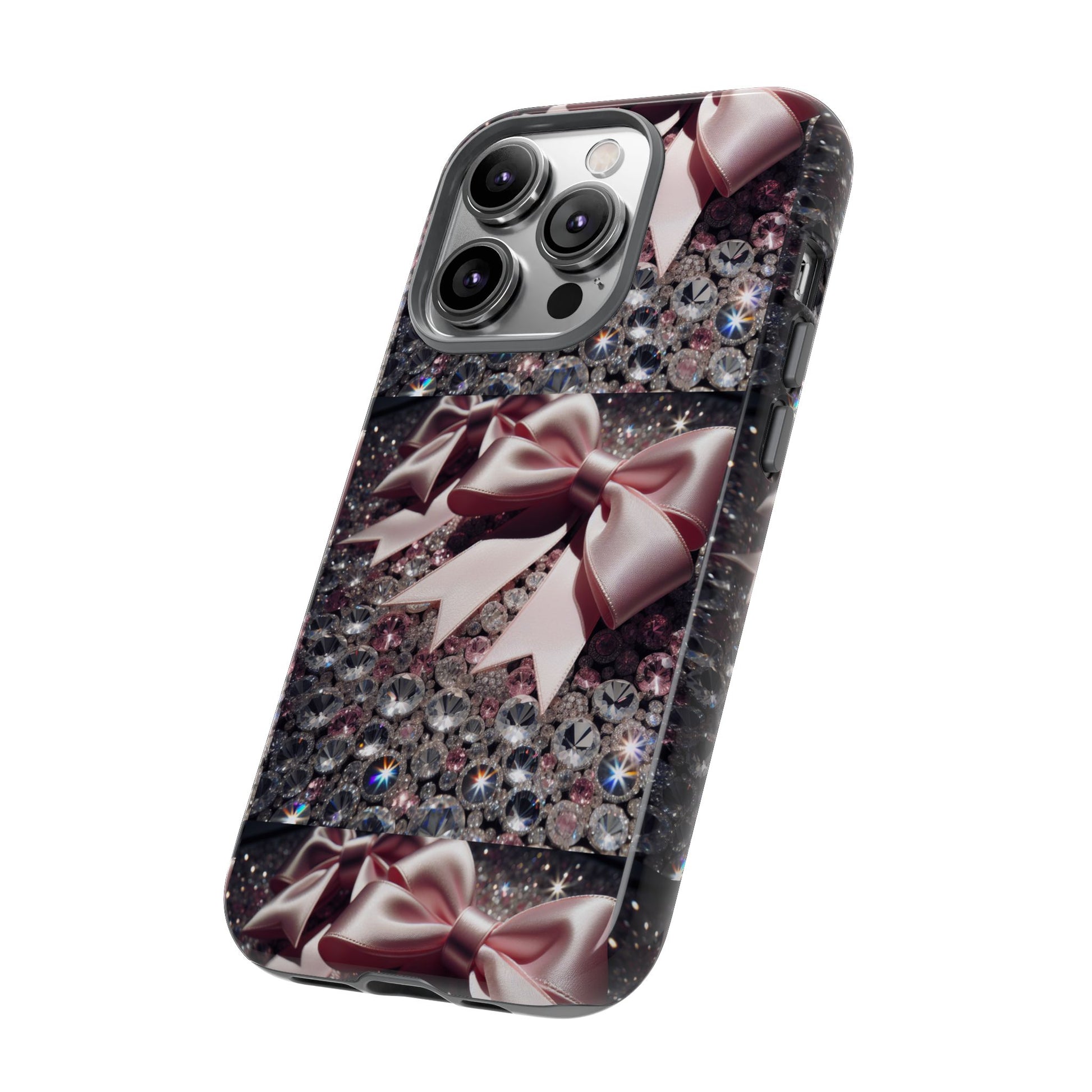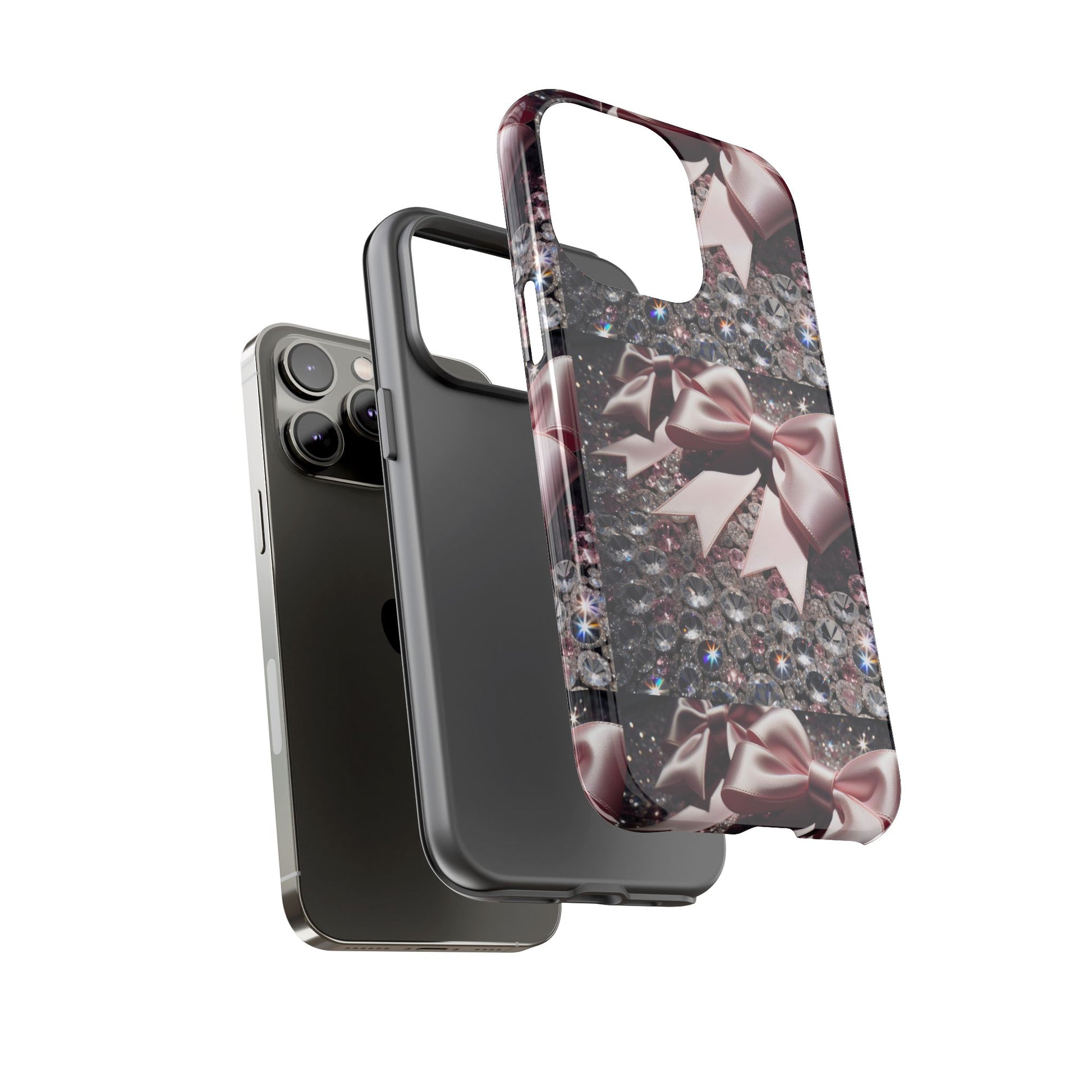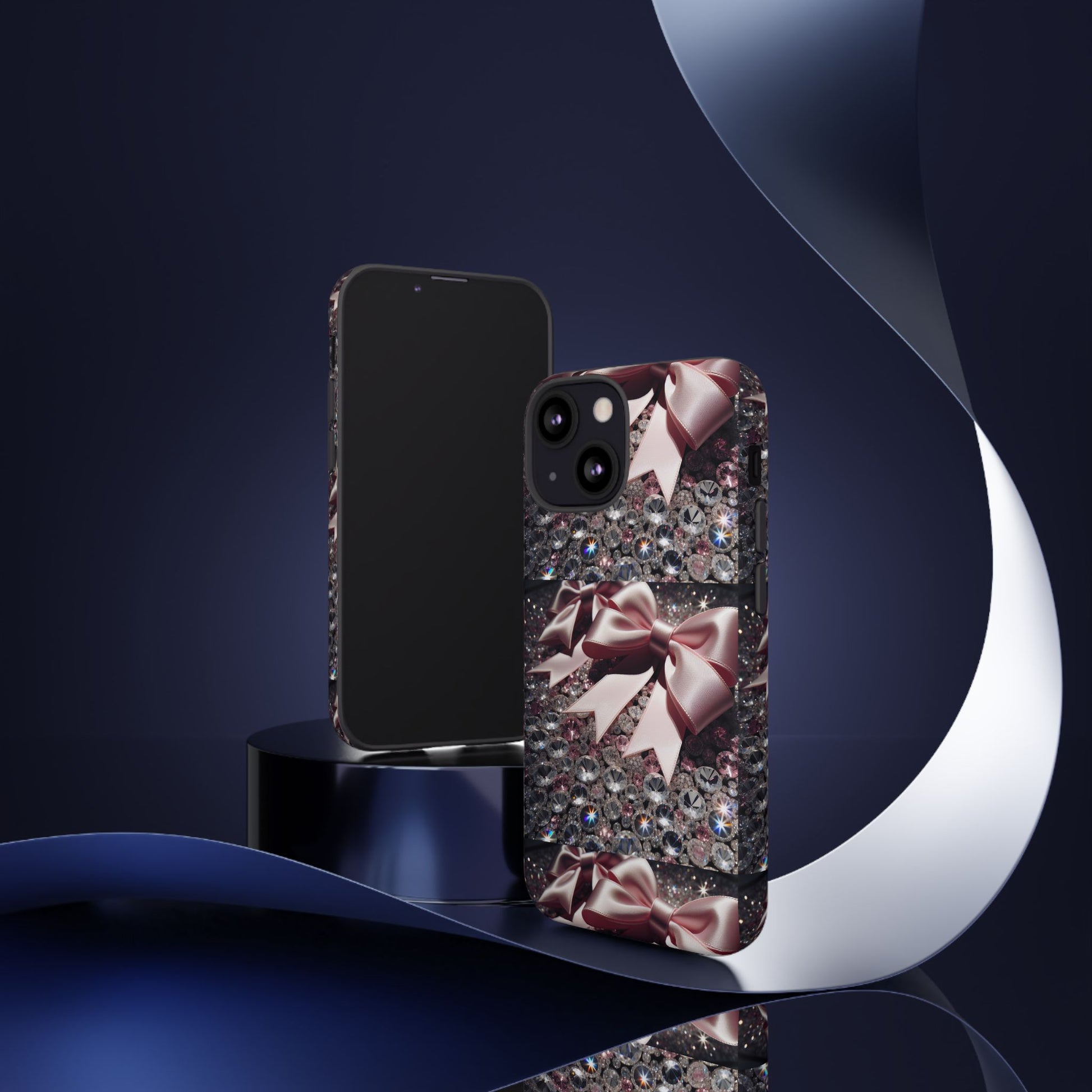 Elevate your style with this stunning phone case that seamlessly combines beauty and durability. Featuring a mesmerizing design adorned with elegant bows and sparkling gems, this case not only protects your phone but also makes a fashion statement. Ideal for those who appreciate a touch of glamour in their everyday lives, it fits perfectly into various settings—from casual outings to festive events. Whether you’re shopping for yourself or searching for the perfect gift for a friend, this phone case is a great choice for birthdays, holidays, or any celebratory occasion. It is designed for adults who want to showcase their personality while keeping their devices safe.