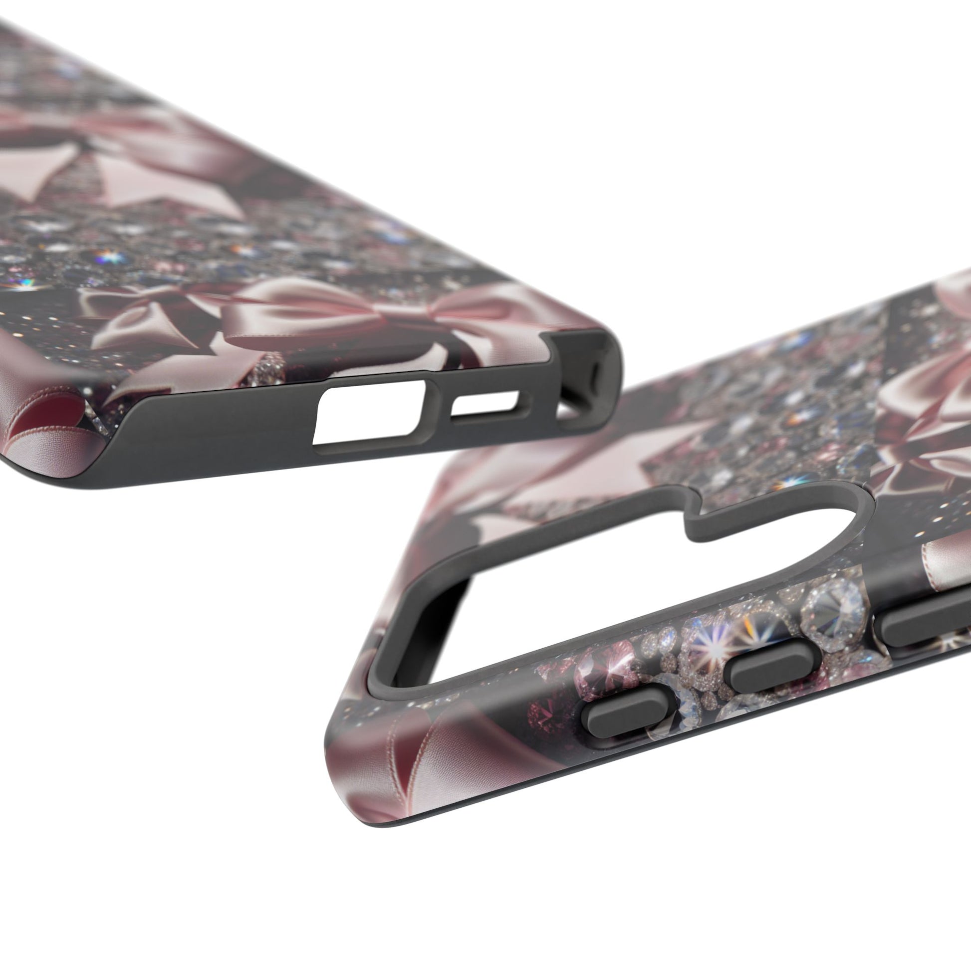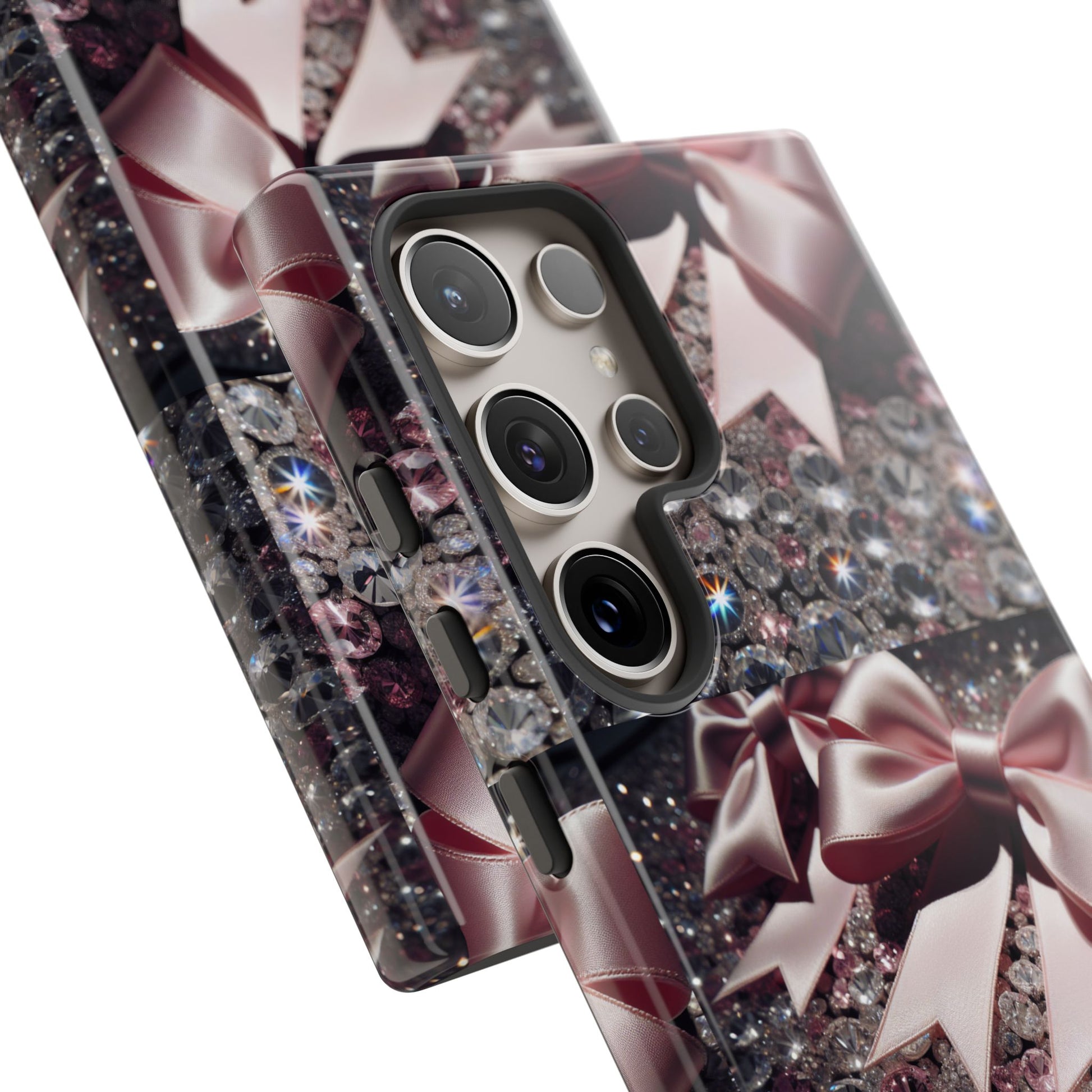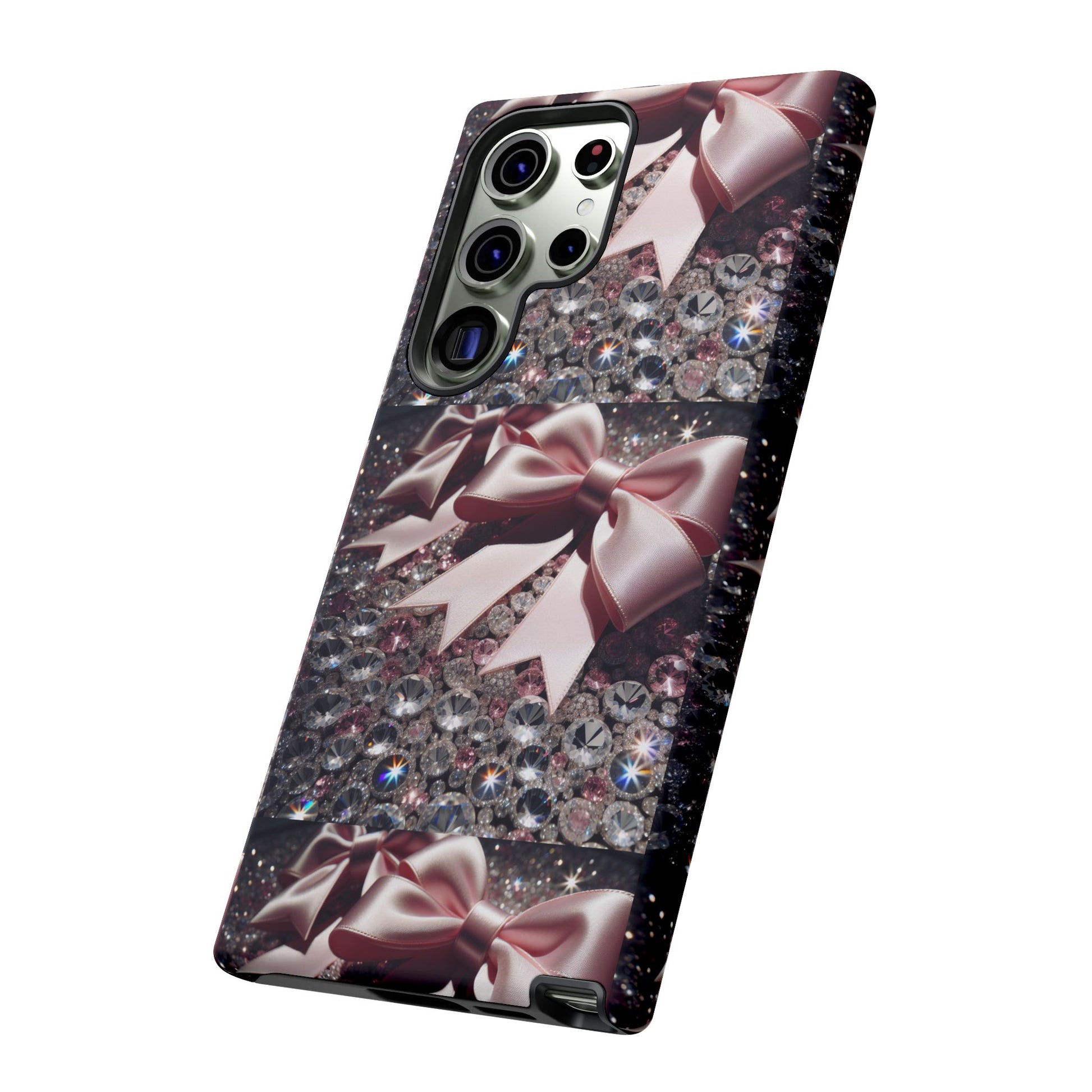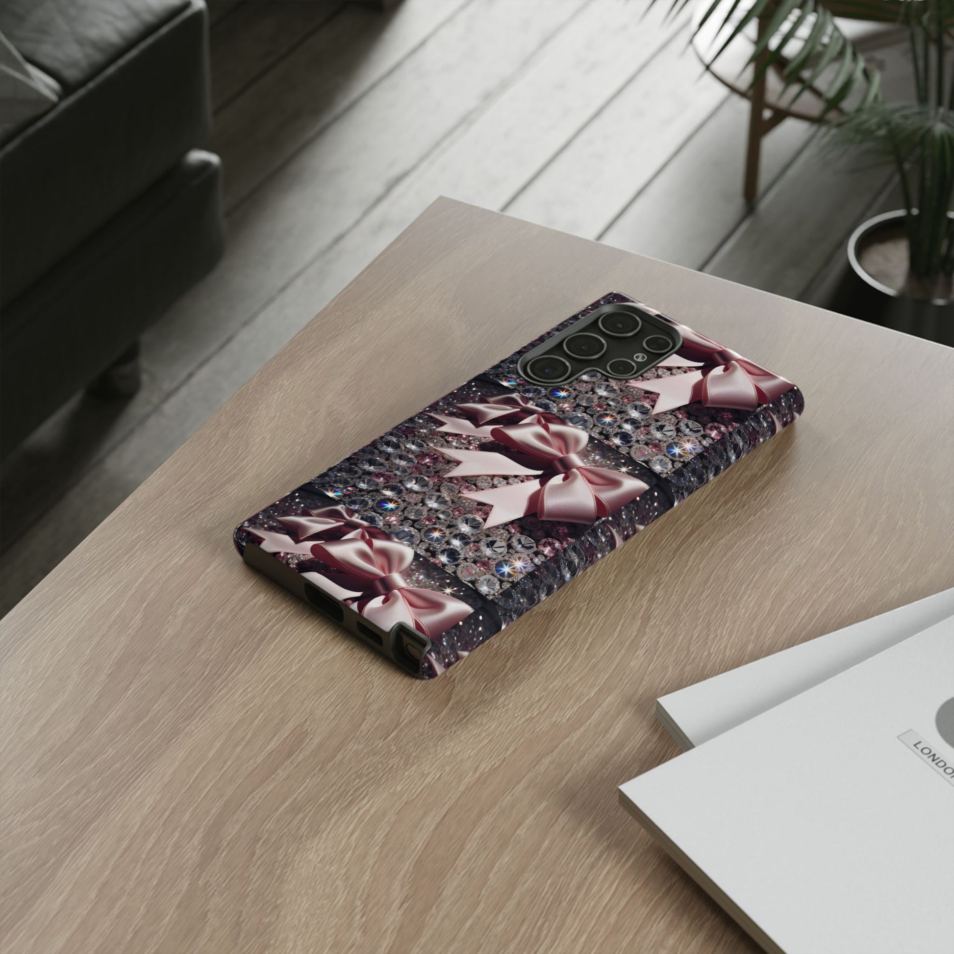 Elevate your style with this stunning phone case that seamlessly combines beauty and durability. Featuring a mesmerizing design adorned with elegant bows and sparkling gems, this case not only protects your phone but also makes a fashion statement. Ideal for those who appreciate a touch of glamour in their everyday lives, it fits perfectly into various settings—from casual outings to festive events. Whether you’re shopping for yourself or searching for the perfect gift for a friend, this phone case is a great choice for birthdays, holidays, or any celebratory occasion. It is designed for adults who want to showcase their personality while keeping their devices safe.
