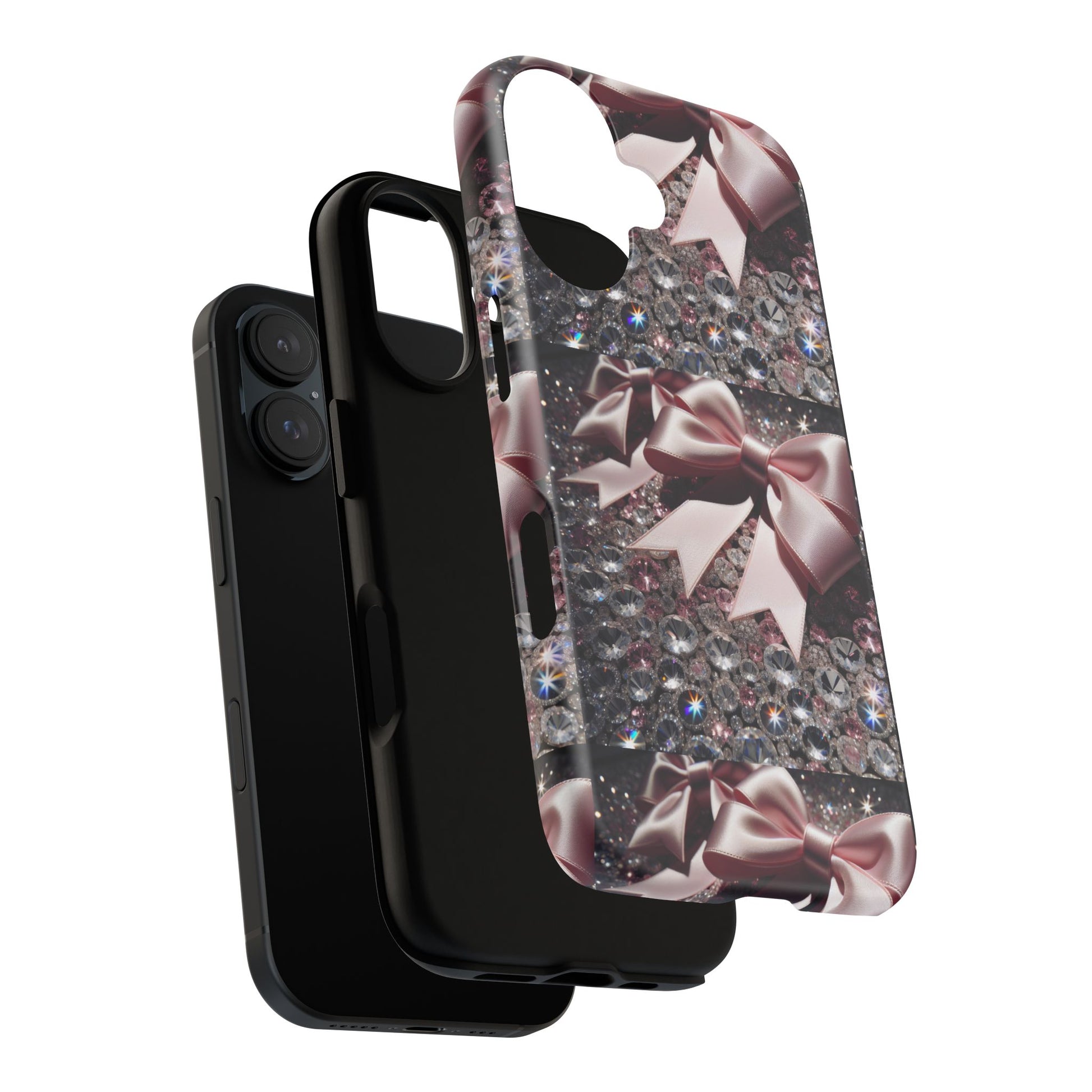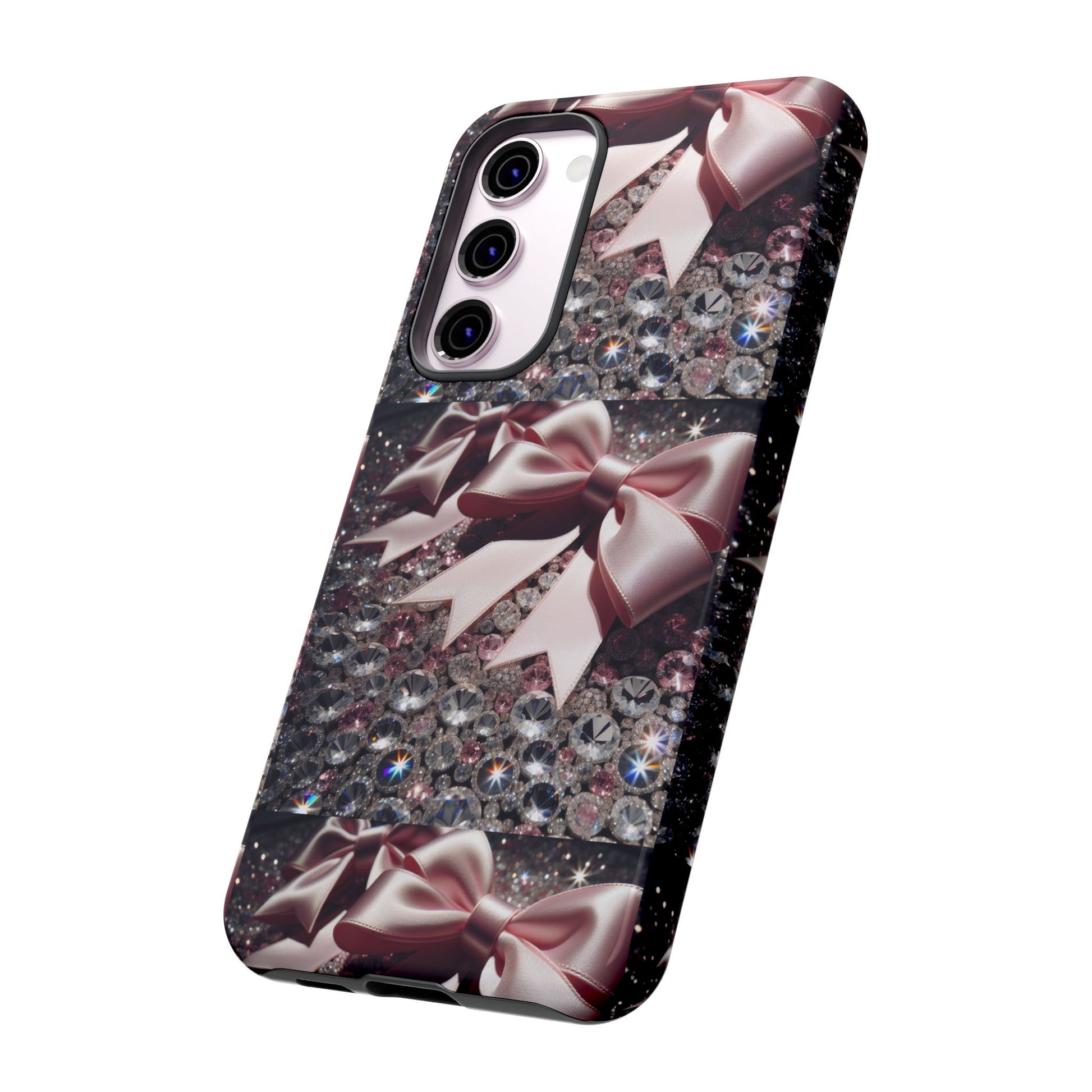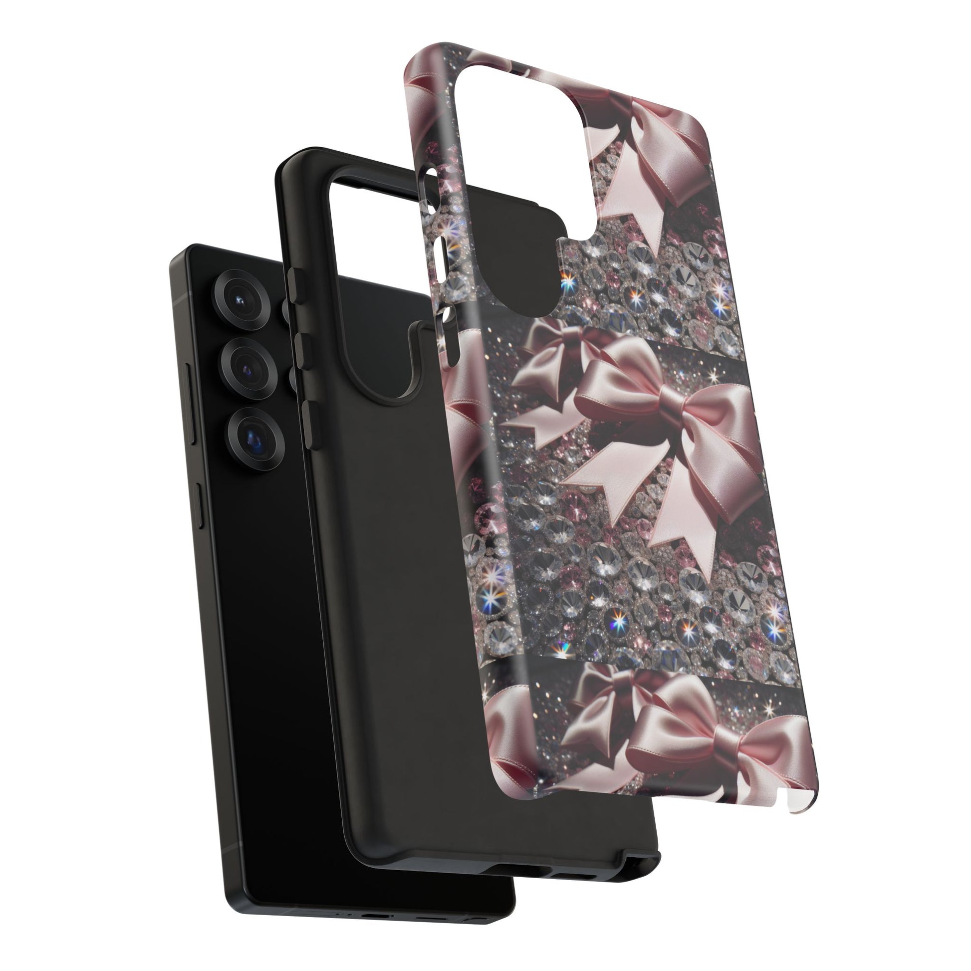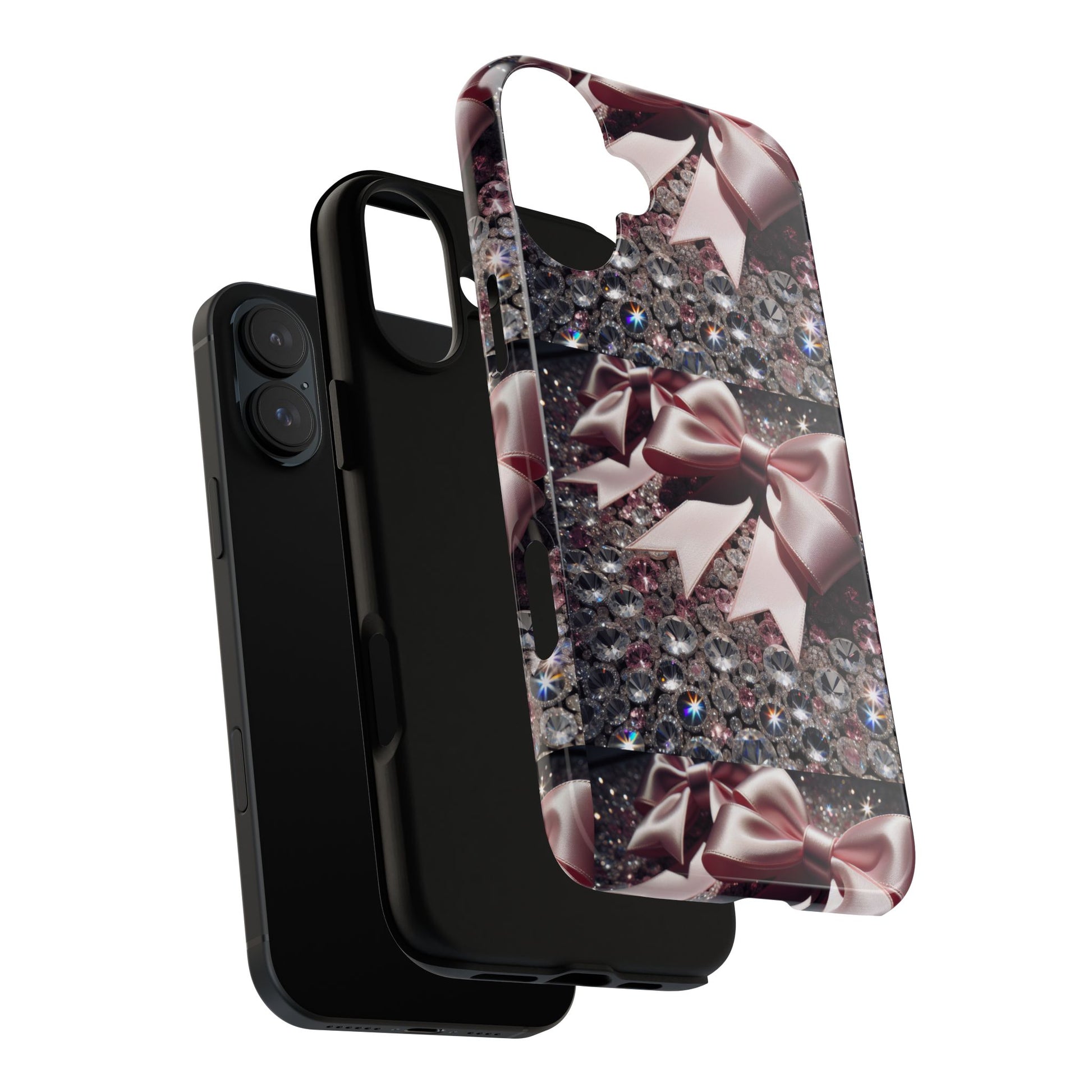 Elevate your style with this stunning phone case that seamlessly combines beauty and durability. Featuring a mesmerizing design adorned with elegant bows and sparkling gems, this case not only protects your phone but also makes a fashion statement. Ideal for those who appreciate a touch of glamour in their everyday lives, it fits perfectly into various settings—from casual outings to festive events. Whether you’re shopping for yourself or searching for the perfect gift for a friend, this phone case is a great choice for birthdays, holidays, or any celebratory occasion. It is designed for adults who want to showcase their personality while keeping their devices safe.