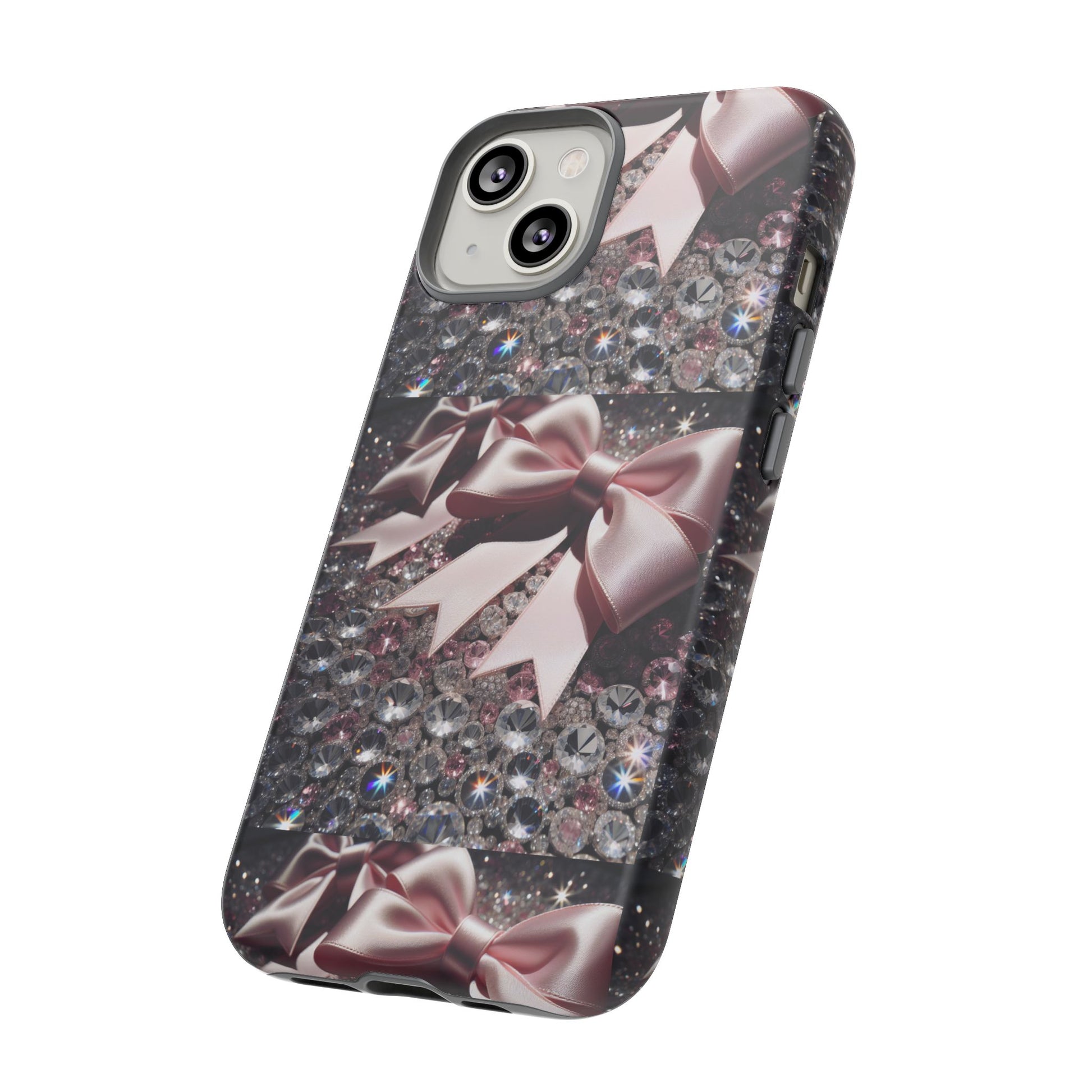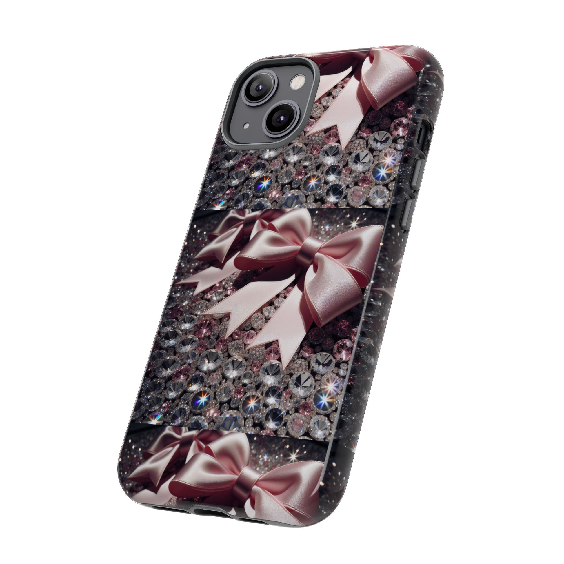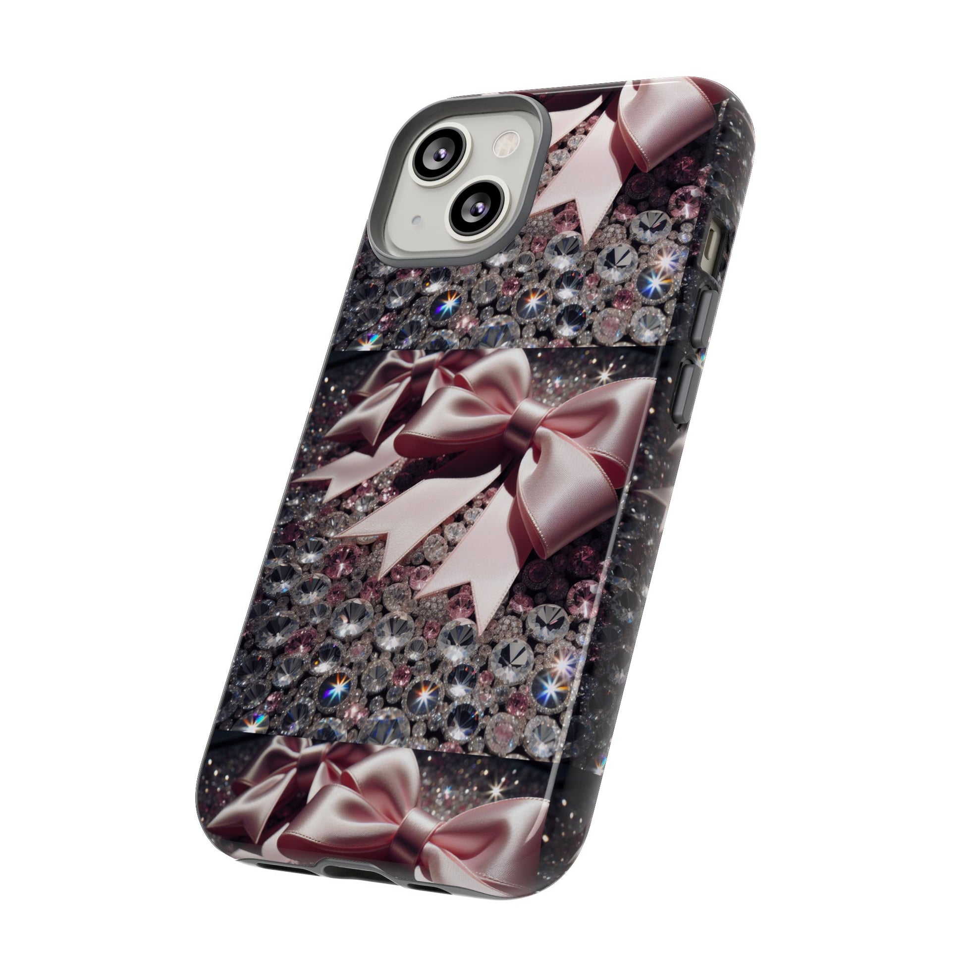 Elevate your style with this stunning phone case that seamlessly combines beauty and durability. Featuring a mesmerizing design adorned with elegant bows and sparkling gems, this case not only protects your phone but also makes a fashion statement. Ideal for those who appreciate a touch of glamour in their everyday lives, it fits perfectly into various settings—from casual outings to festive events. Whether you’re shopping for yourself or searching for the perfect gift for a friend, this phone case is a great choice for birthdays, holidays, or any celebratory occasion. It is designed for adults who want to showcase their personality while keeping their devices safe.
