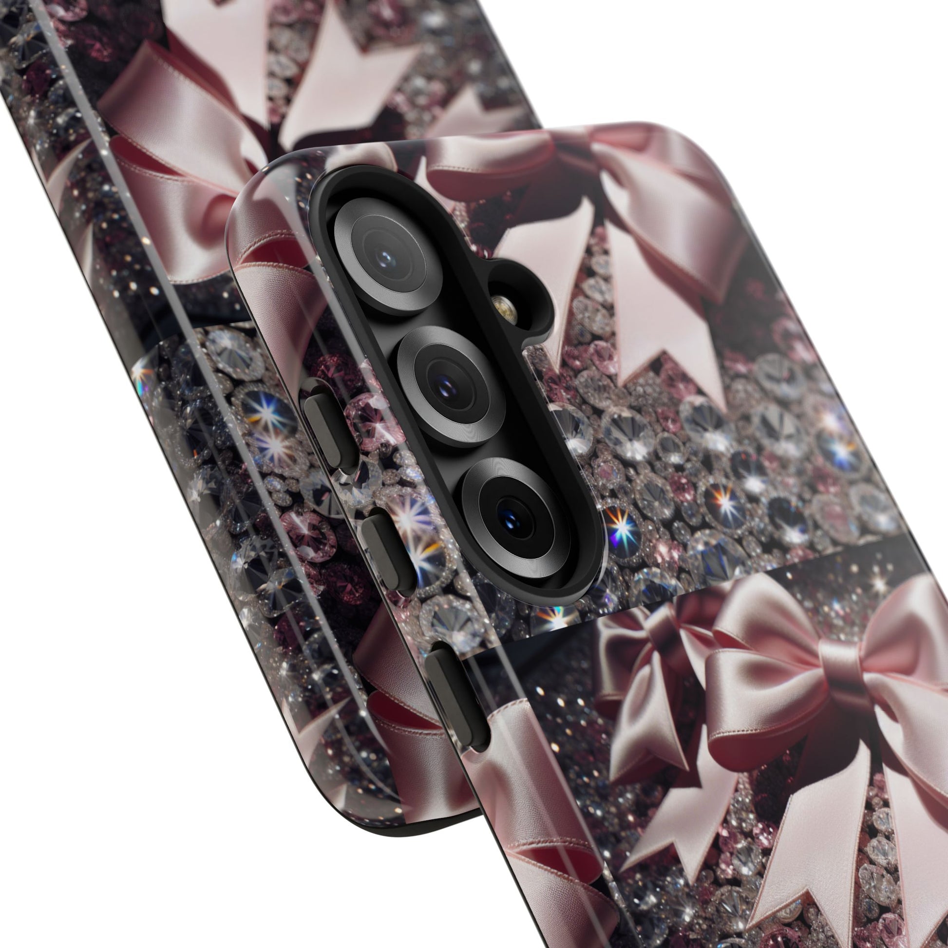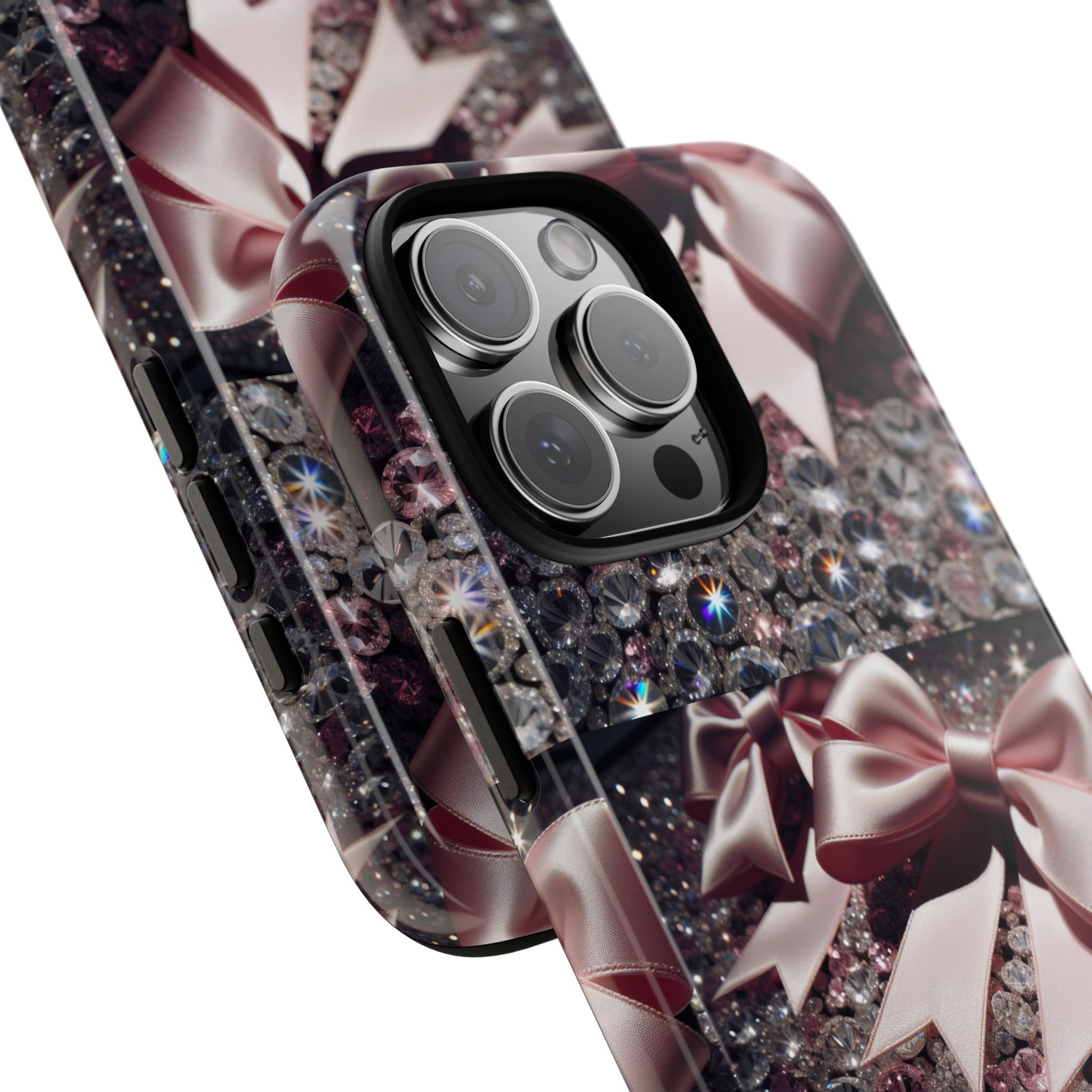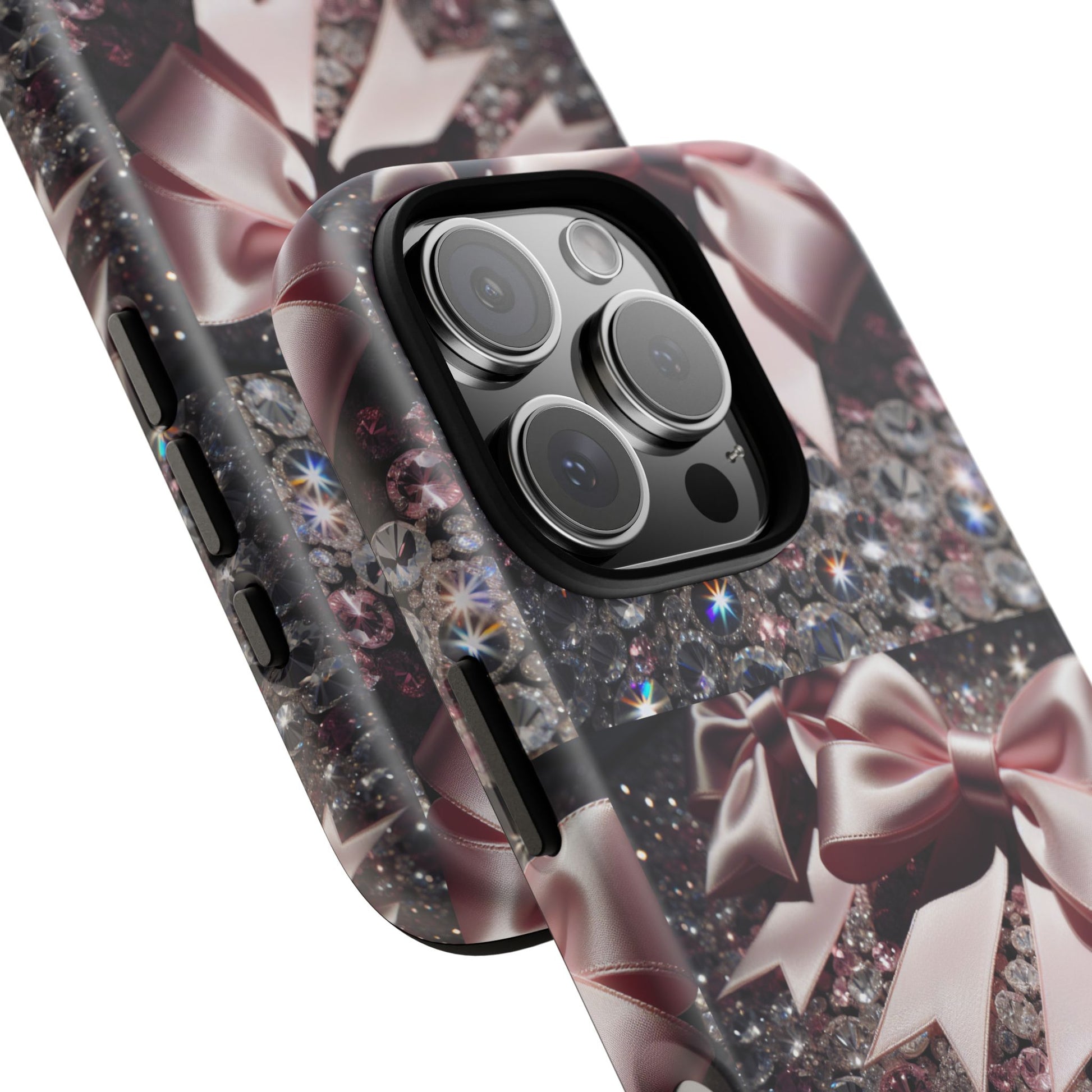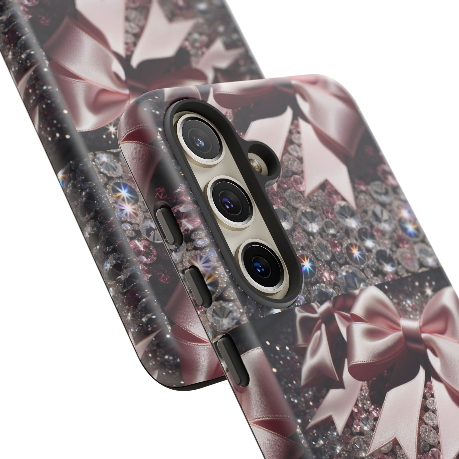 Elevate your style with this stunning phone case that seamlessly combines beauty and durability. Featuring a mesmerizing design adorned with elegant bows and sparkling gems, this case not only protects your phone but also makes a fashion statement. Ideal for those who appreciate a touch of glamour in their everyday lives, it fits perfectly into various settings—from casual outings to festive events. Whether you’re shopping for yourself or searching for the perfect gift for a friend, this phone case is a great choice for birthdays, holidays, or any celebratory occasion. It is designed for adults who want to showcase their personality while keeping their devices safe.