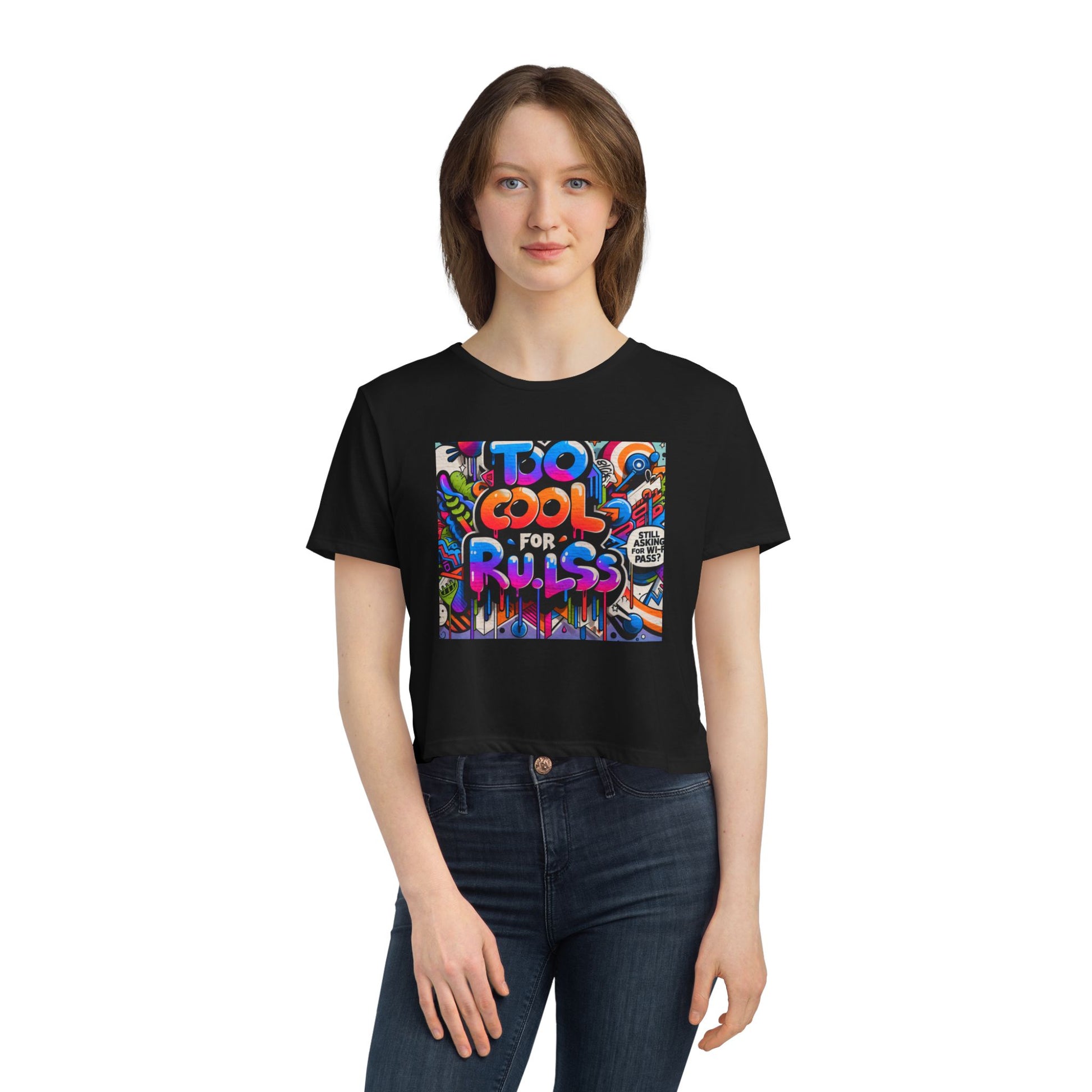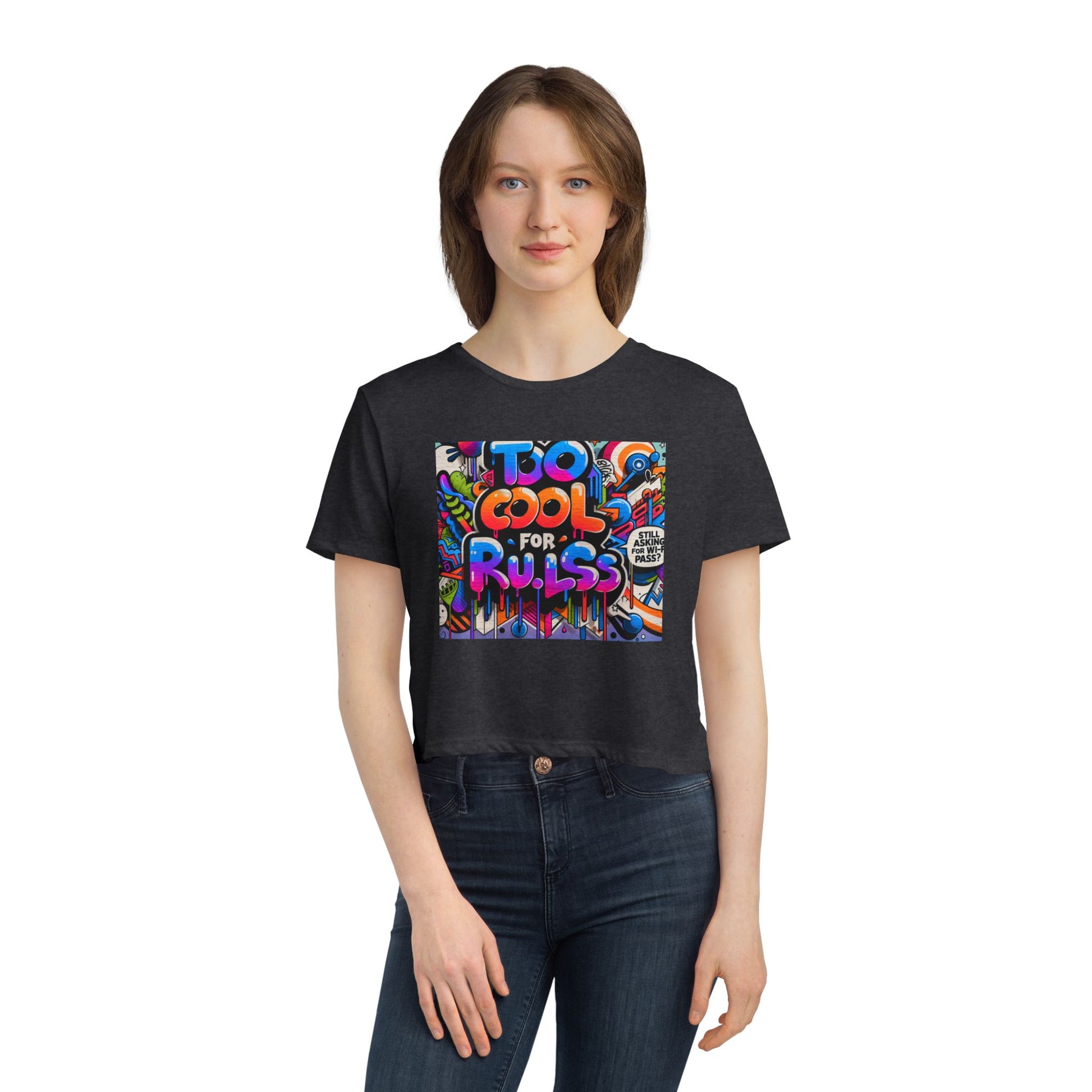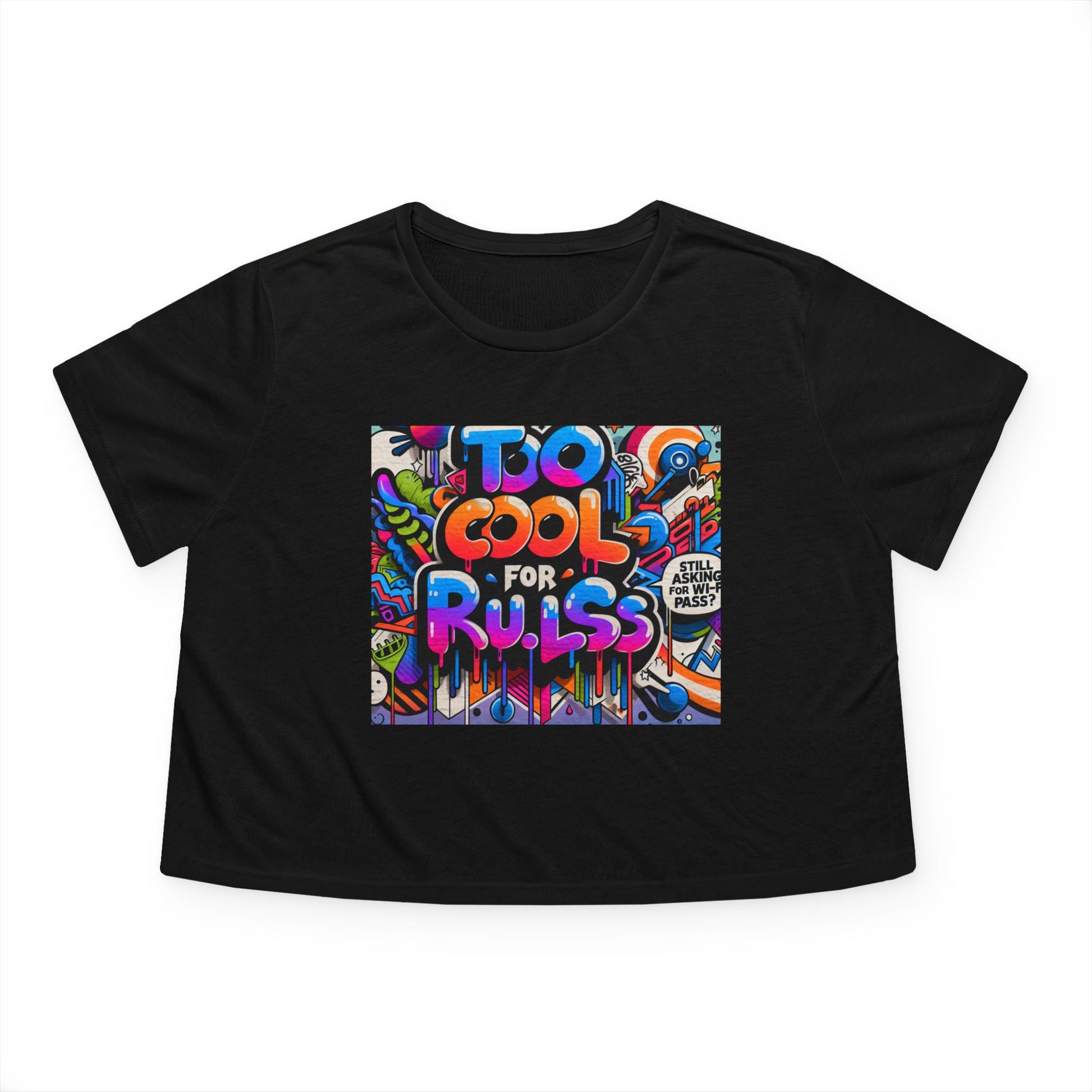 Too Cool for Rules Flowy Cropped Tee, Casual Shirt, Graphic Tee, Trendy Top, Gift for Her, Summer Fashion